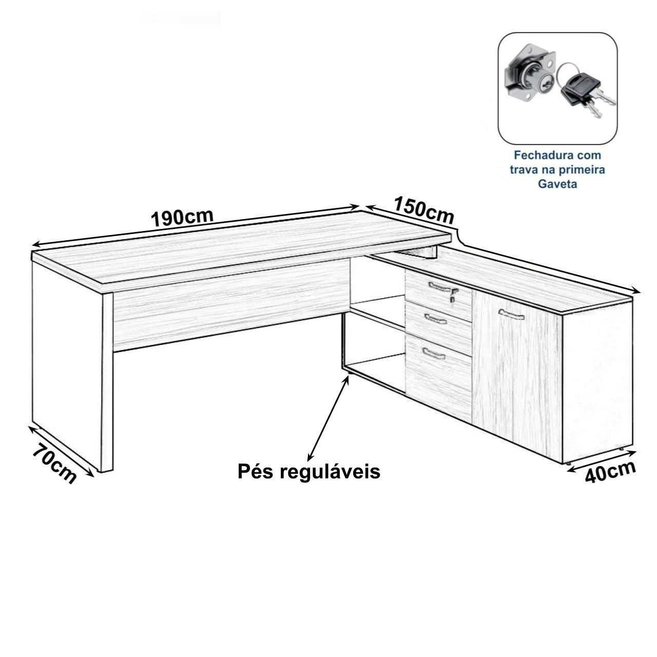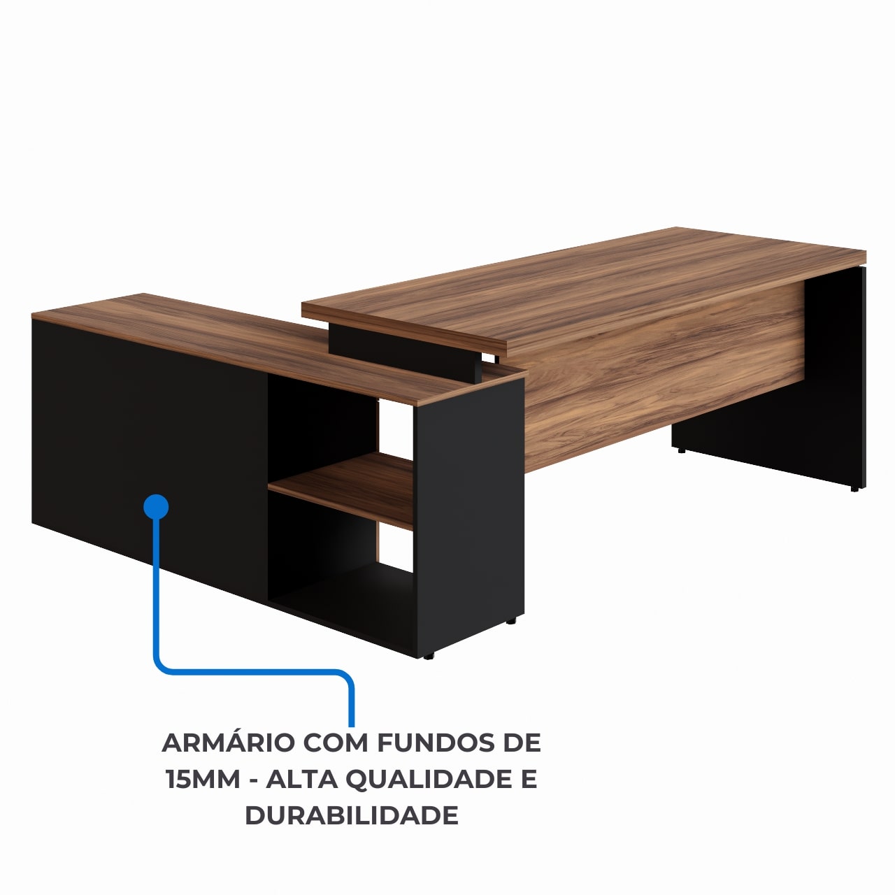 Mesa Diretor c/ Aparador – Pé de MADEIRA – 1,90×1,50mNOGAL SEVILHA / PRETO