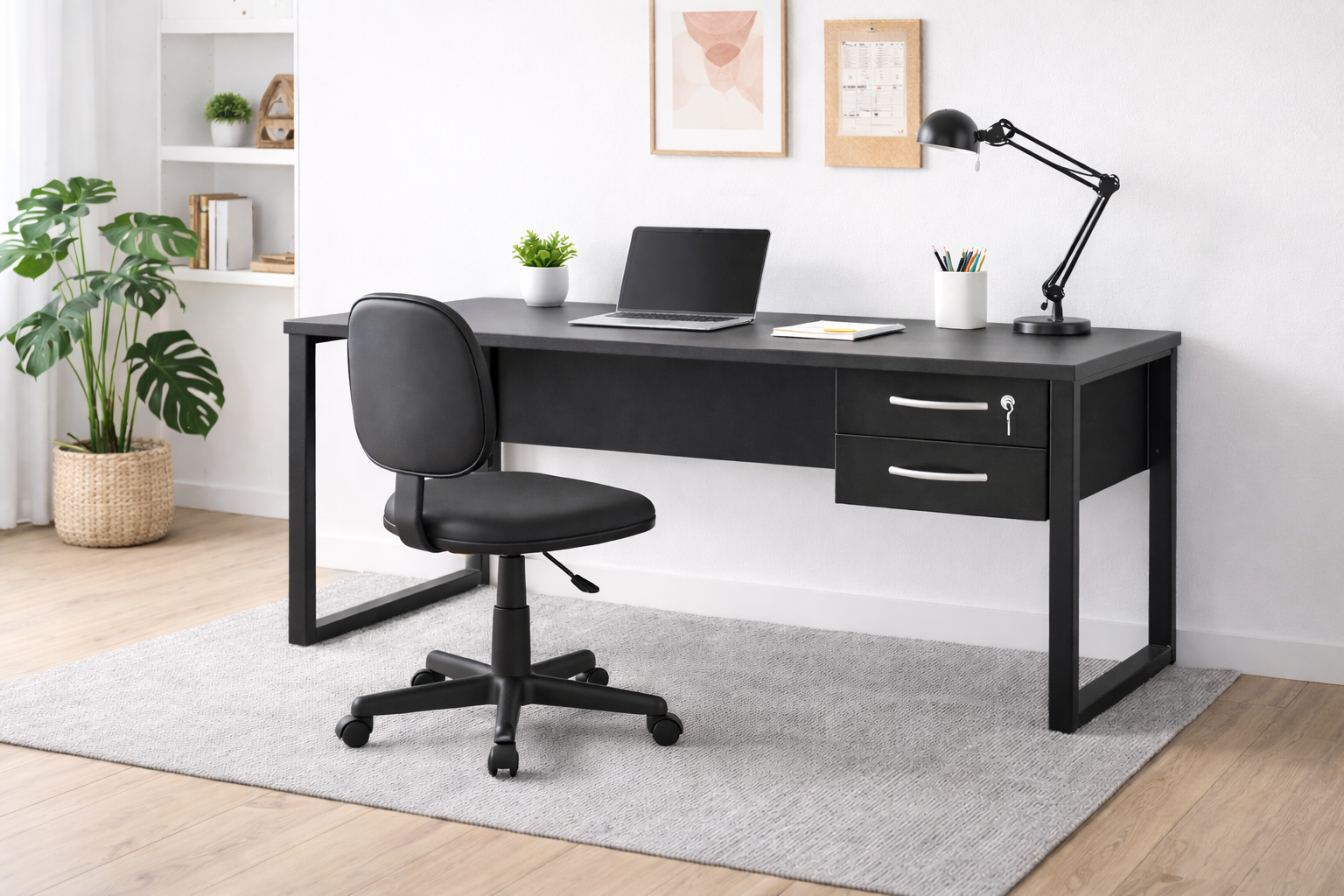 Mesa de escritório com design moderno, ideal para ambientes corporativos ou home office. Seu estilo com pé industrial traz um visual atual e sofisticado, garantindo firmeza e durabilidade no uso diário.