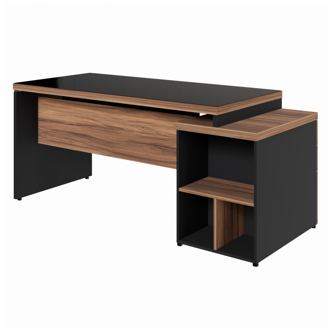 Produto: Mesa PEDESTAL RETA C/ VIDRO (03 Gav.) – 1,92X0,70m NOGAL SEVILHA/PRETO