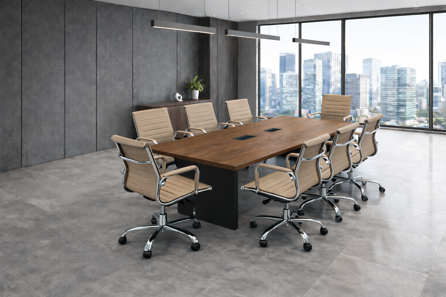 Produto: Mesa de Reunião 2,70×1,10m – C/ 02 Caixa de Tomadas NOGAL SEVILHA –