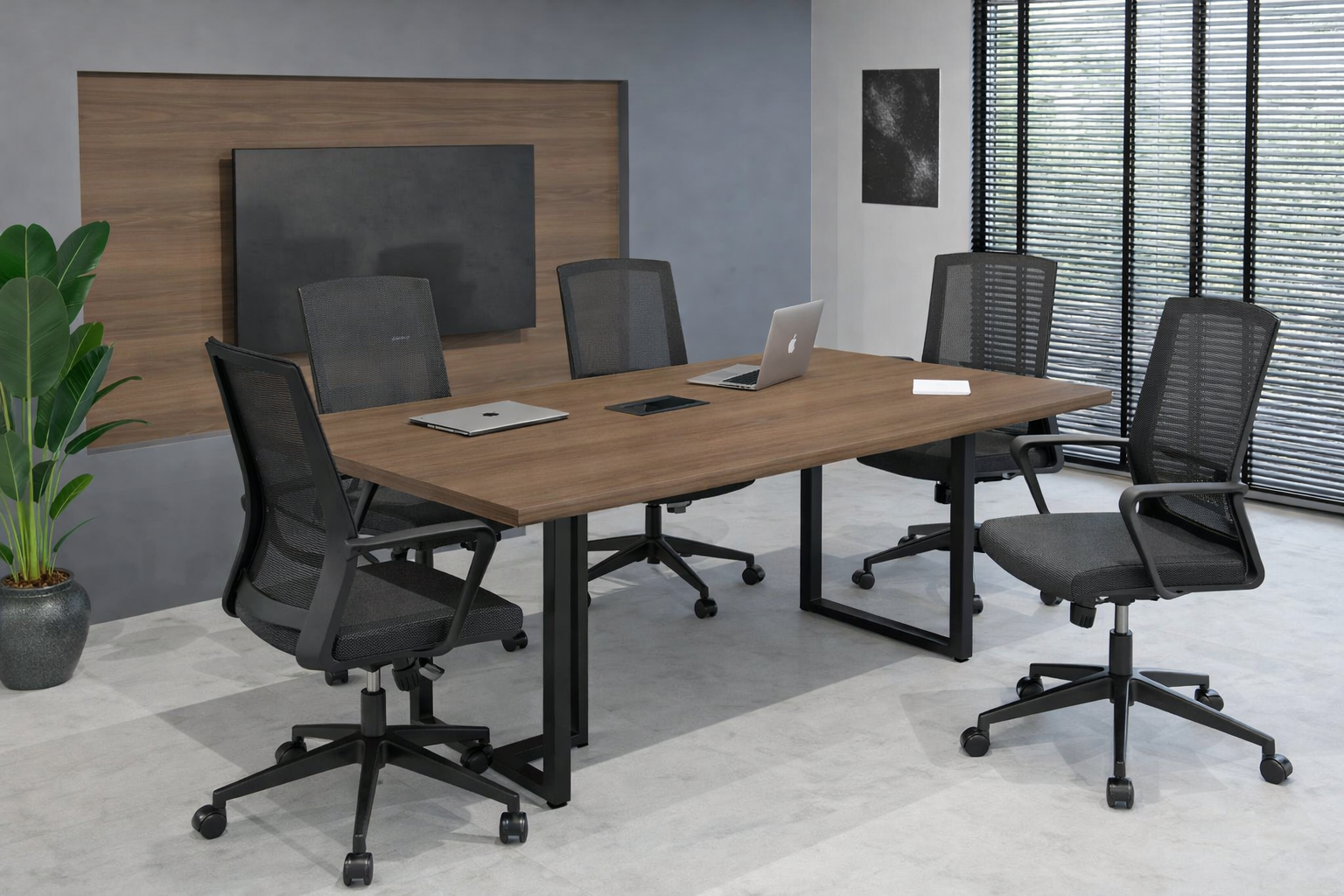 Mesa de Reunião 2,00×1,00m – C/ 01 Caixa de Tomada NOGAL com pé industrial